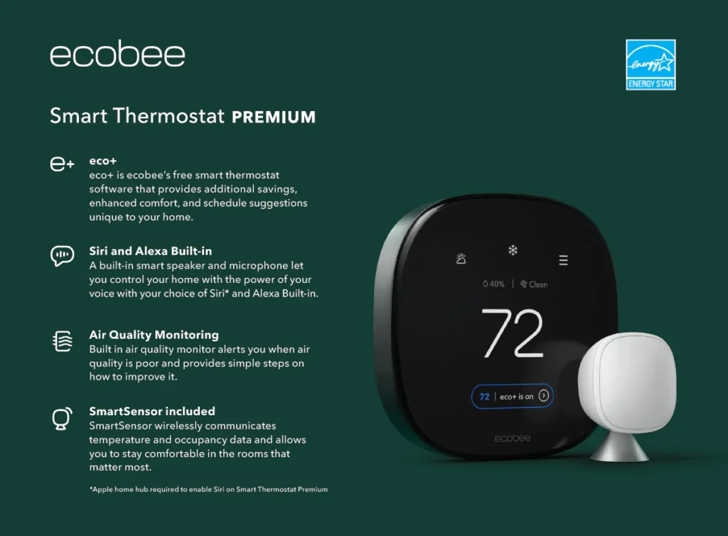 Ecobee offers voice control, room sensors for balanced temperature, and an intuitive app for seamless energy savings.
